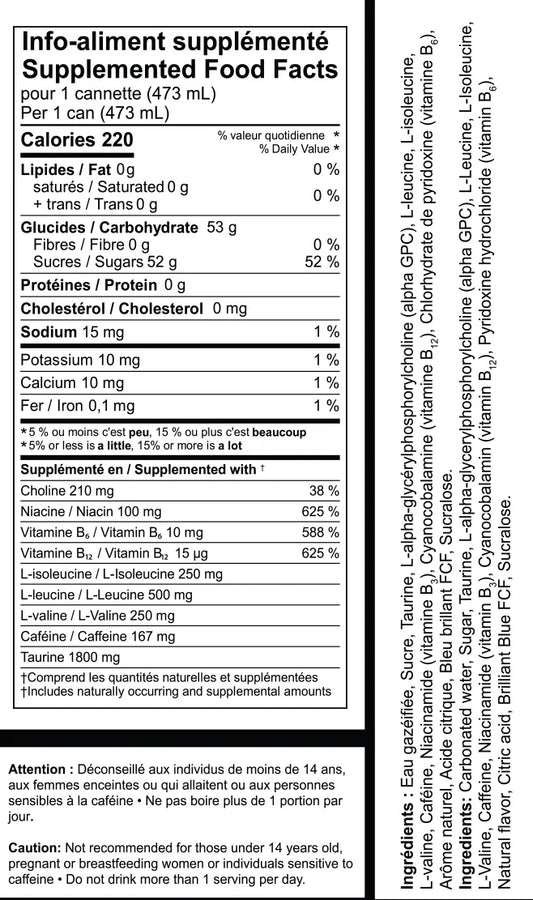 PLATTO ENERGY DRINK - BLUE RASBERRY - 12 PACK