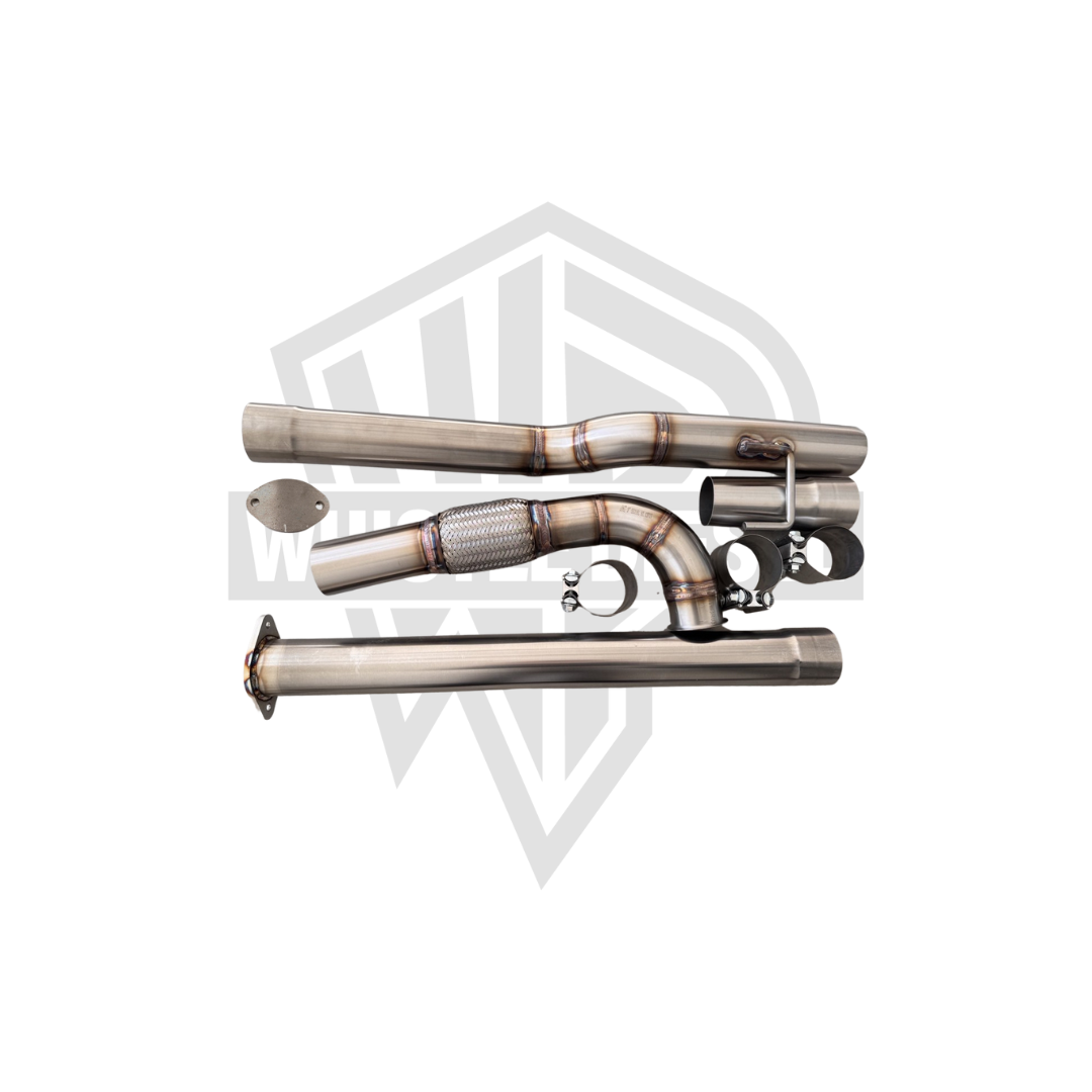 Fitment from downpipe to the rear flange maintain stock rear tailpipe.